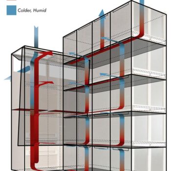 Geconditioneerd drogen geschiedt met gedroogde lucht. Daarom worden de kisten in een geïsoleerde ruimte geplaatst.