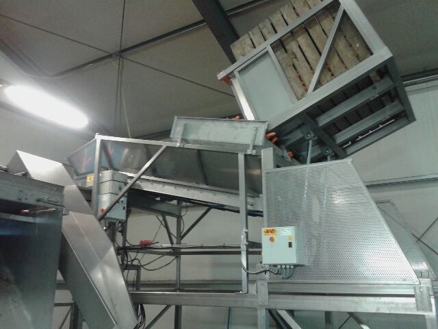 Een kist met product kan (met een kantelaar op een heftruck of met een vaste kantelaar) in een doseerbunker worden geleegd. Deze doseerbunker is voorzien van een band met V-meenemers. De band wordt gedragen door gelagerde rollen om weerstand te voorkomen. De gangbare breedtes van de band zijn 800, 1000, 1200 en 1500 mm. De lengte gaat tot 5000 mm.