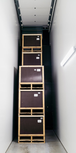 De indeling en het ontwerp van de cellen met kisten zijn klantspecifiek. Wij adviseren u graag. Overheaddeuren maken een optimale benutting van de celcapaciteit mogelijk.