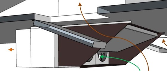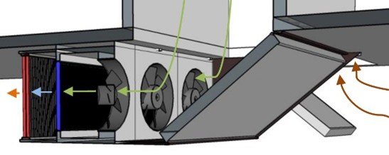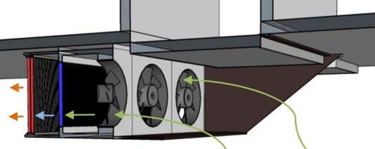 Bij smalle cellen of brede koel-droogunits worden de uitlaatluiken achter de inlaatluiken geplaatst.