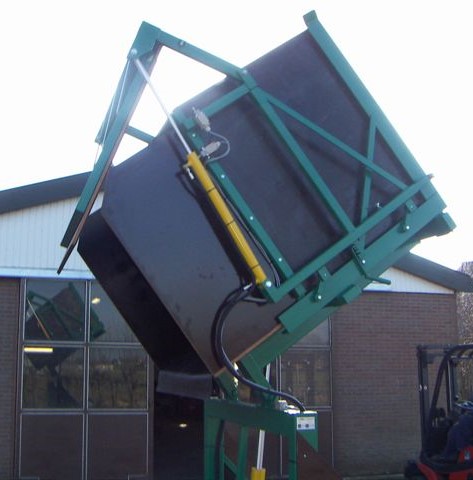 Met dit basismodel kantelaar kunnen kisten snel en veilig in een doseerbunker of op een doseerband worden geleegd. De kist kantelt voldoende zodat deze volledig geleegd wordt.