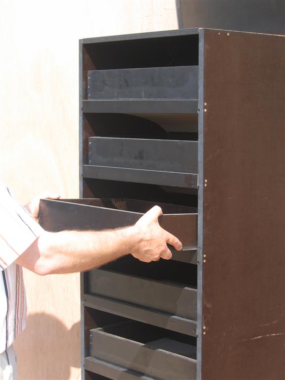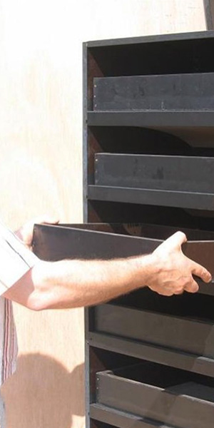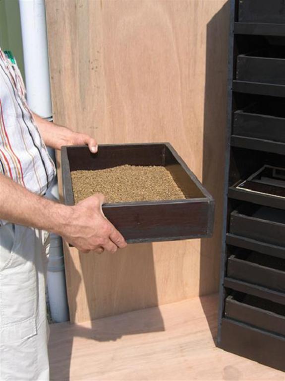 Het zijn vaak houten kisten waarbij de bodem van gaas is uitgevoerd. Kisten voor een droogsysteem zijn naast hout ook leverbaar in staal of RVS. Om zaadvermenging te voorkomen is de binnenzijde van elke kist afgewerkt. In deze kisten kunnen de zaden ook worden bewaard.